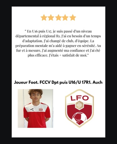 Témoignages de jeunes footballeurs, sportives, sportifs, français ou francophones. Les suivis pour les mineurs nécessitent l'accord des 2 parents. Leur présence est nécessaire au 1er RDV. (présentiel ou visio).