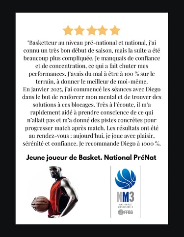 Je te propose différents accompagnements personnalisés, en présentiel ou en visio, selon tes besoins, tes objectifs, pour libérer ton plein potentiel et améliorer tes performances sportives ou réalisations personnelles. Que tu sois un sportif, un professionnel ou un particulier, je t'accompagne pour développer tes capacités mentales nécessaires pour être plus serein et surmonter tes défis avec plus de confiance.